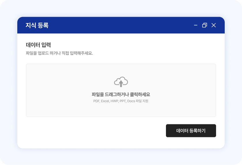 고객이 업로드한 자료를 기반으로 지식베이스를 자동으로 구축하며, 비전문가도 쉽게 대화 서비스를 설정할 수 있습니다.