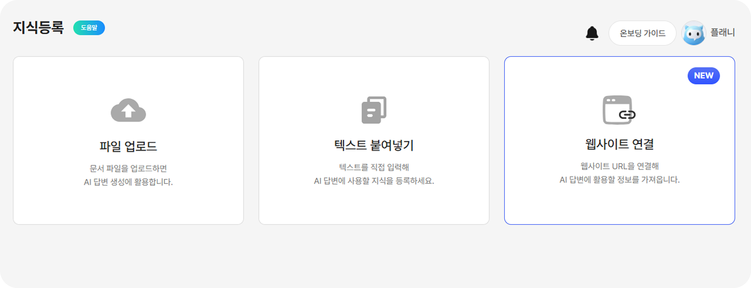 이제 별도의 문서 업로드 없이도 운영 중인 웹사이트를 그대로 AI 지식 자산으로 전환할 수 있습니다.